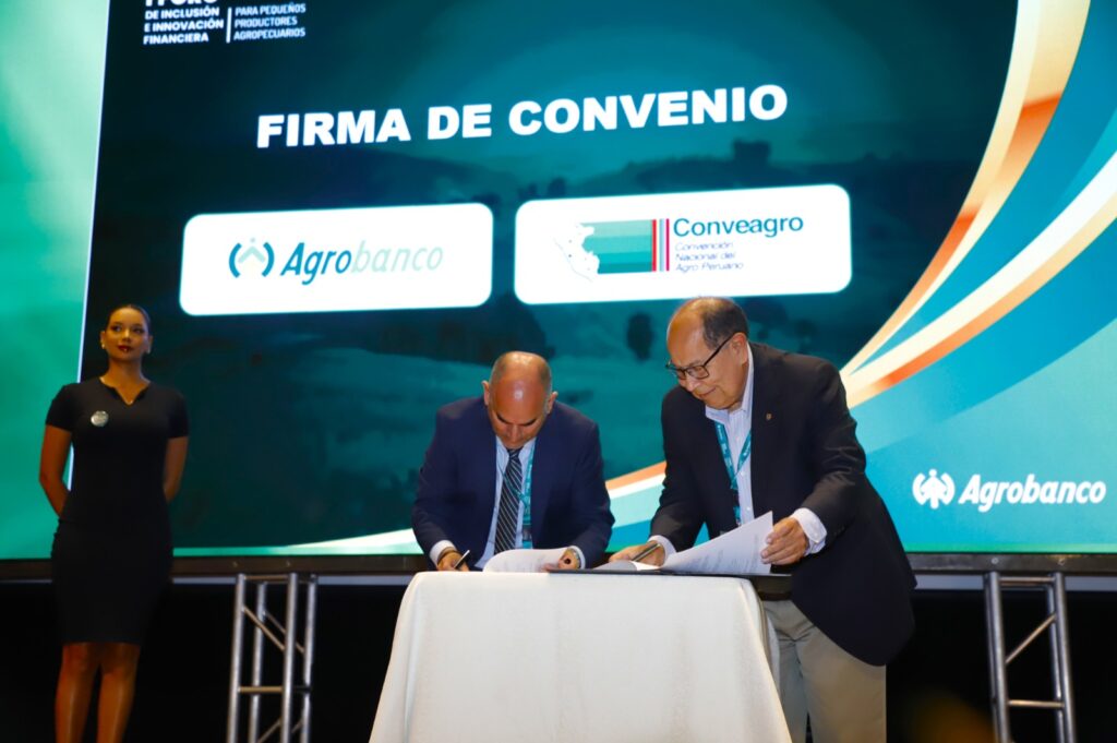 En el marco del I Foro de Inclusión e Innovación Financiera para Pequeños Productores Agropecuarios, el Banco Agropecuario (Agrobanco) y la Convención Nacional del Agro Peruano (Conveagro) suscribieron un Convenio de Cooperación Interinstitucional con el objetivo de promover el acceso al financiamiento, la inclusión financiera y el fortalecimiento productivo de los pequeños y medianos productores agropecuarios del país. El acuerdo establece compromisos conjuntos orientados a impulsar el desarrollo sostenible del sector agrario, fortaleciendo los mecanismos de crédito, la asistencia técnica y la competitividad del productor rural.
